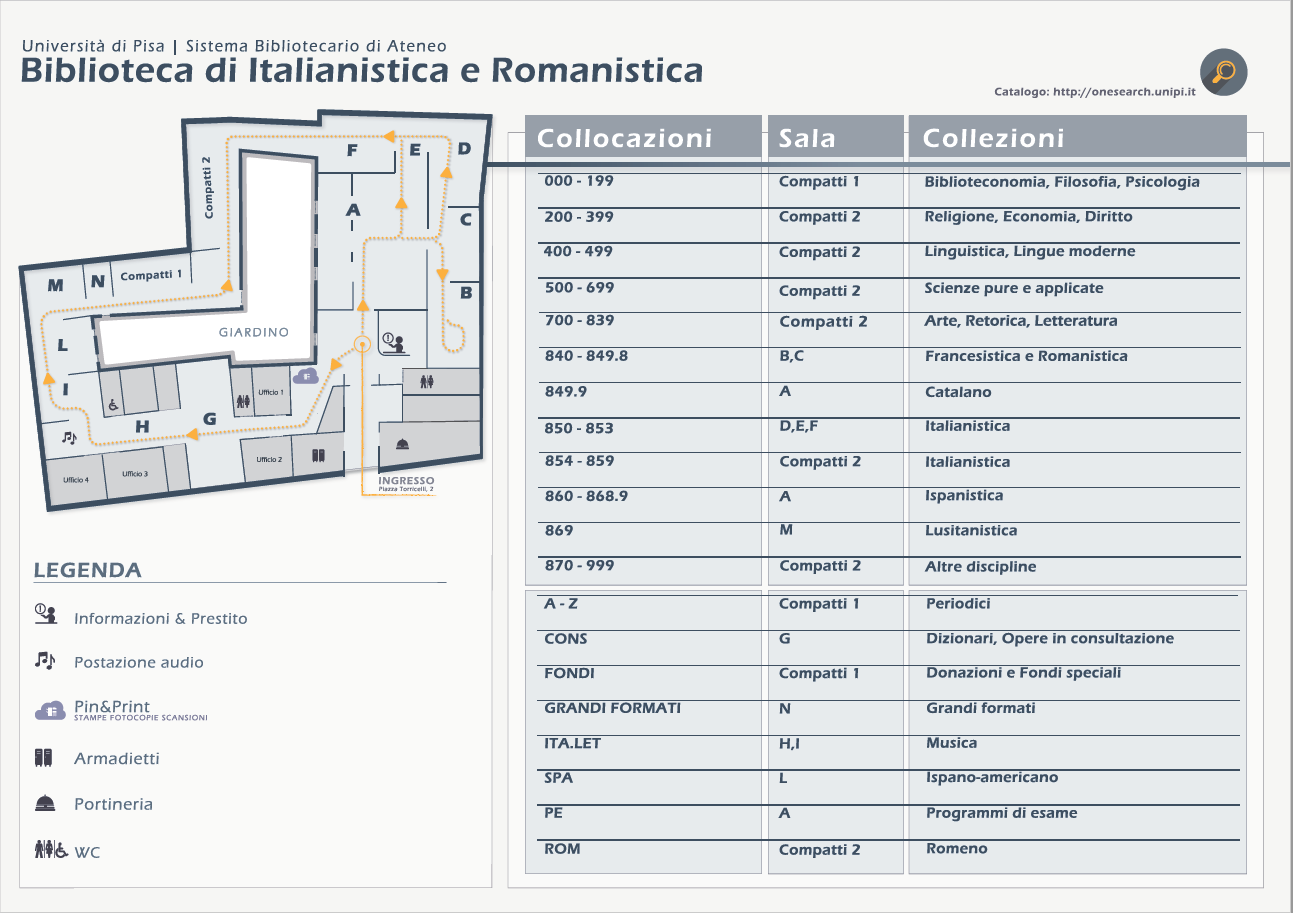 La sigla della Biblioteca di Italianistica e romanistica all'interno del Catalogo di ateneo è LM1: questa sigla precede, in catalogo, tutte le collocazioni dei libri posseduti da questa biblioteca.
