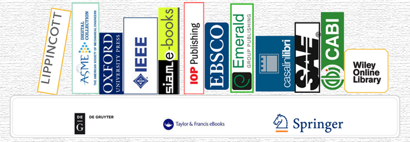 Disponibili dal 2018 oltre 60.000 nuove risorse elettroniche di tutti gli ambiti disciplinari (prevalentemente collezioni di ebook ma anche riviste elettroniche e banche dati) dei principali editori accademici: Wiley, Taylor and Francis, Lippincott, Springer, IEEE, De Gruyter, IOP, Oxford ecc.
