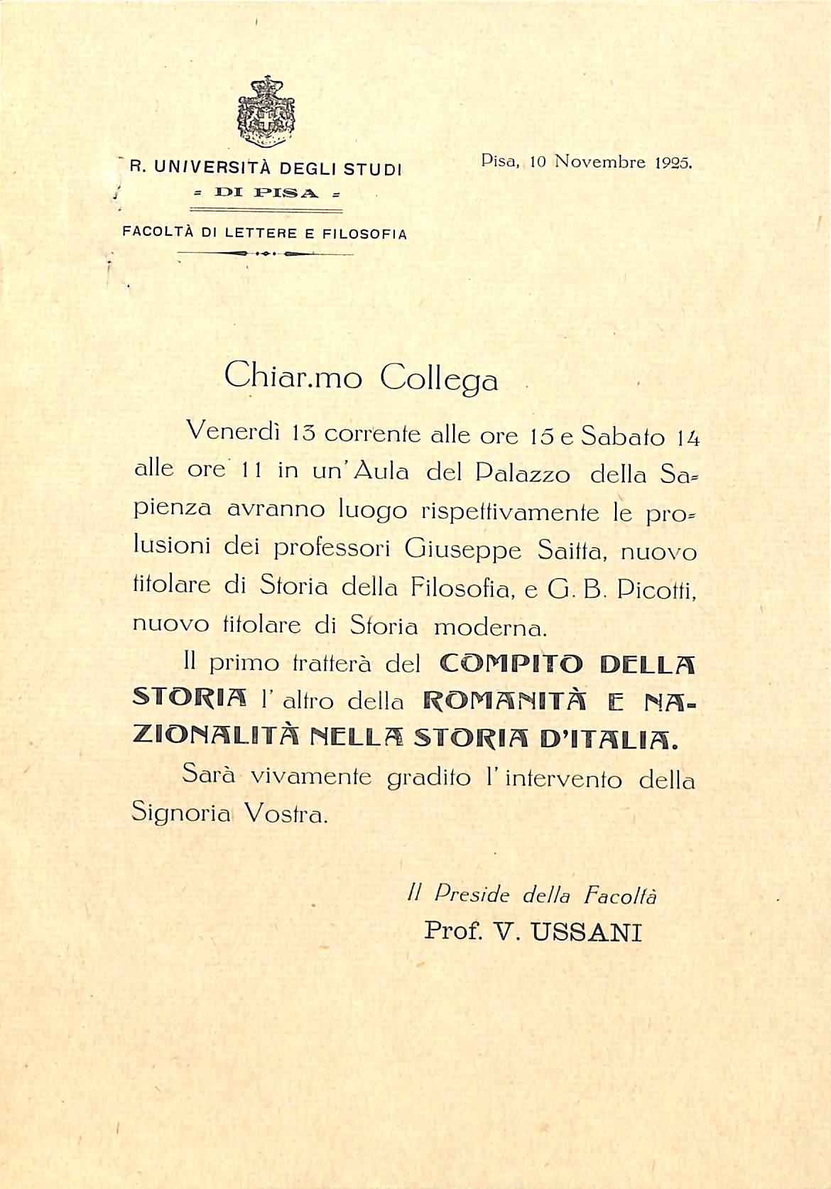 PDF icon Relazione sull'andamento dell'anno scolastico - Facoltà di Lettere e Filosofia - Vincenzo Ussani