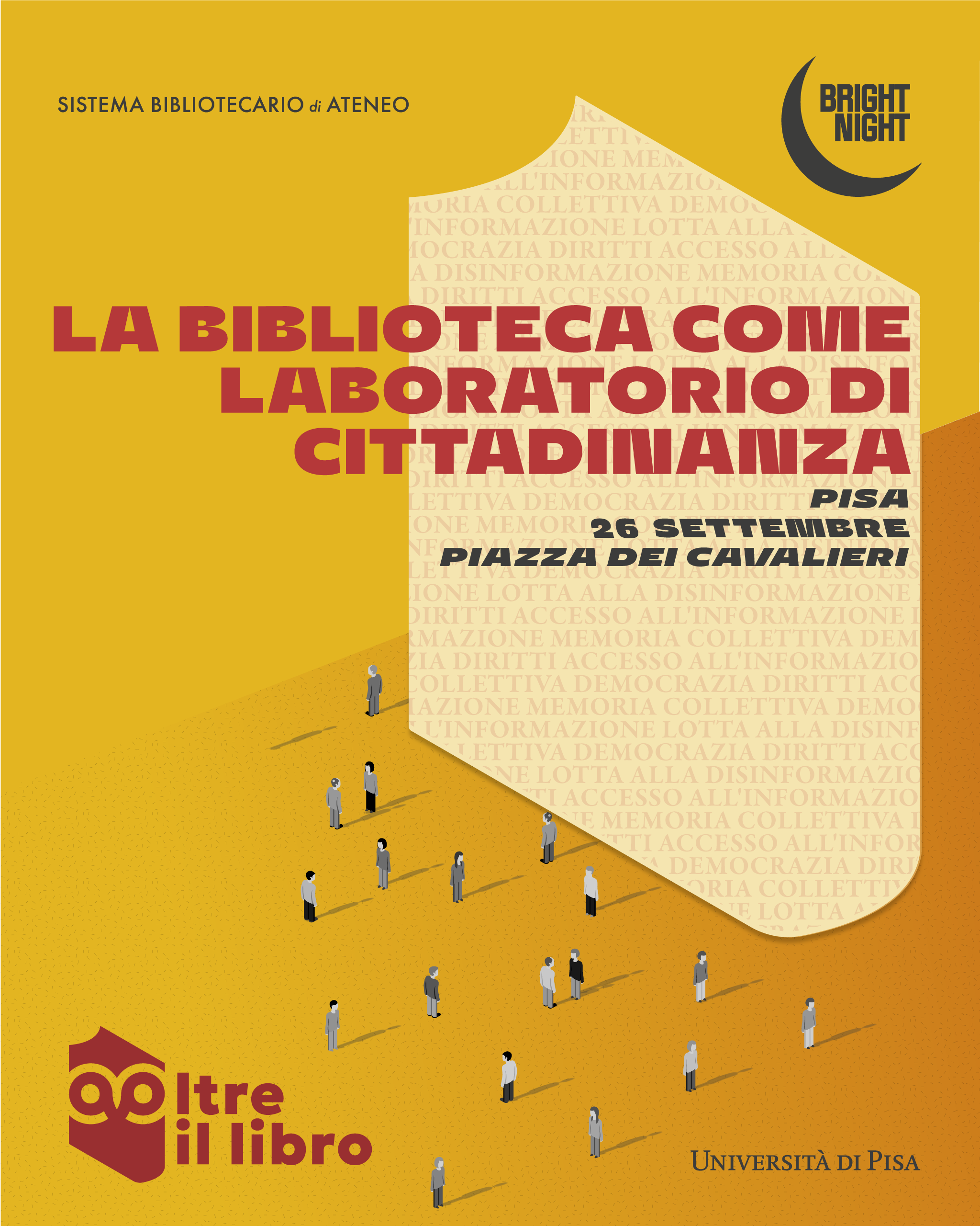 In piazza dei Cavalieri il Sistema Bibliotecario di Ateneo ha partecipato con il suo stand "Oltre il libro: la biblioteca come laboratorio di cittadinanza". Esposizione di libri antichi e moderni delle biblioteche di ateneo, ponendo l'attenzione al fatto che sono luoghi di inclusione e di conoscenza, quiz a premi con segnalibri e cartoline.