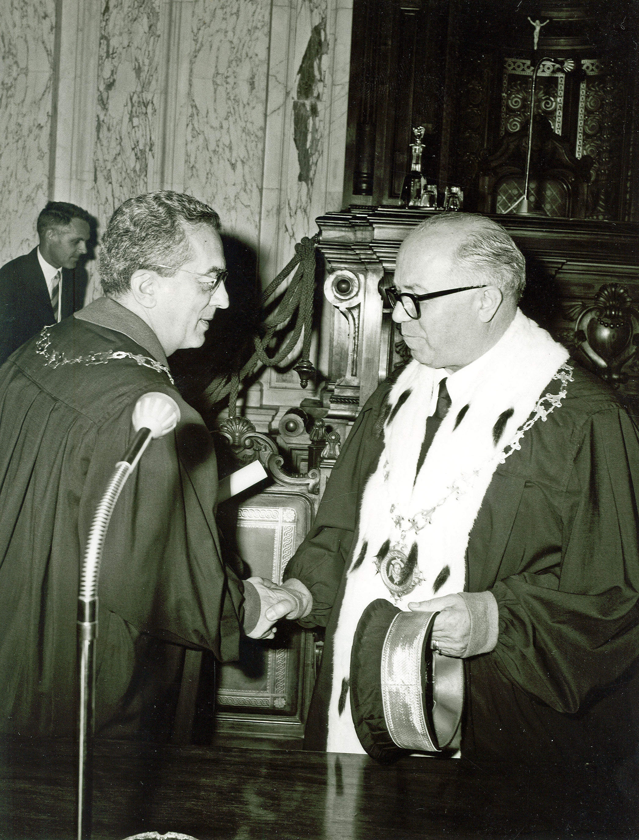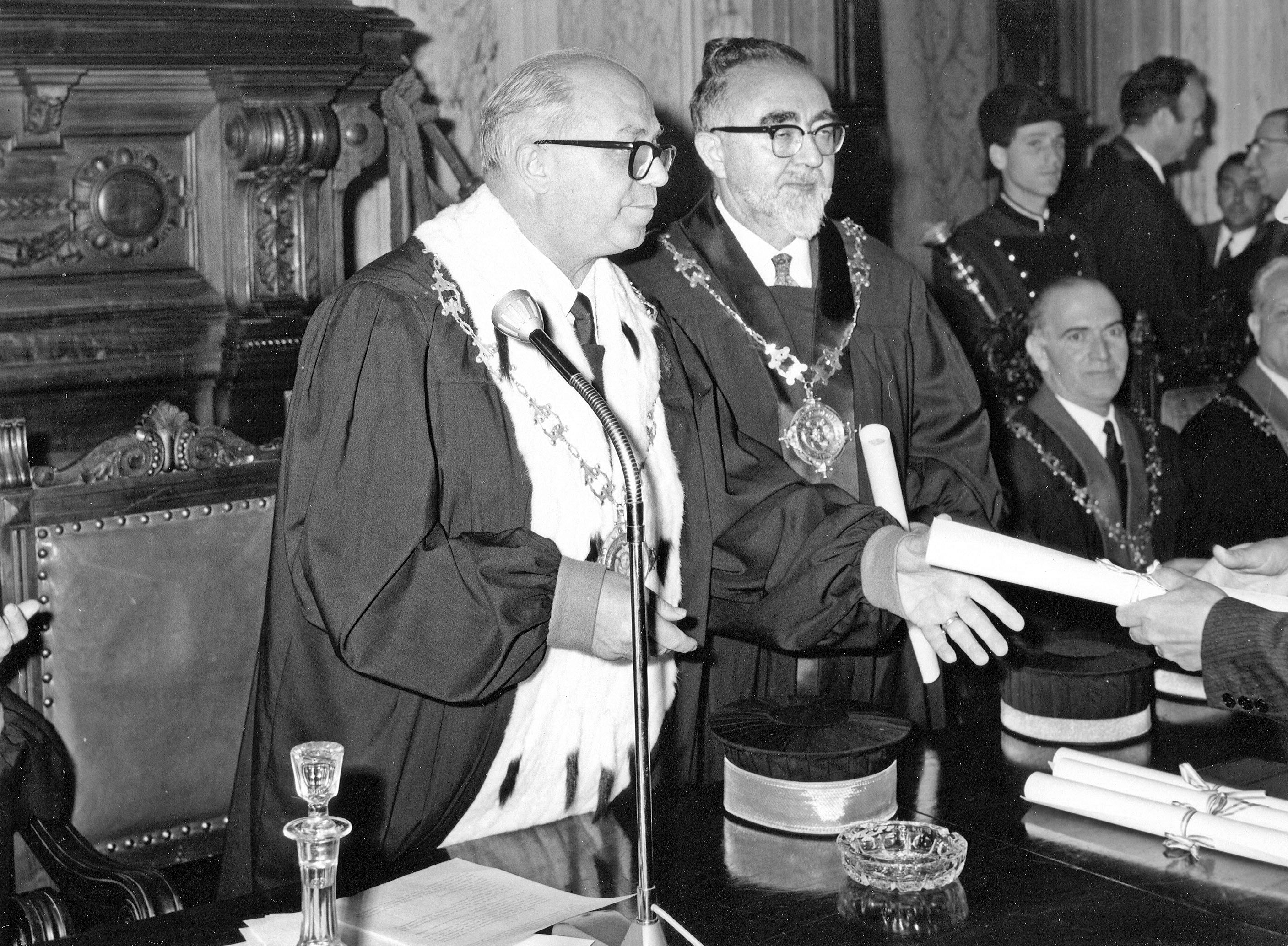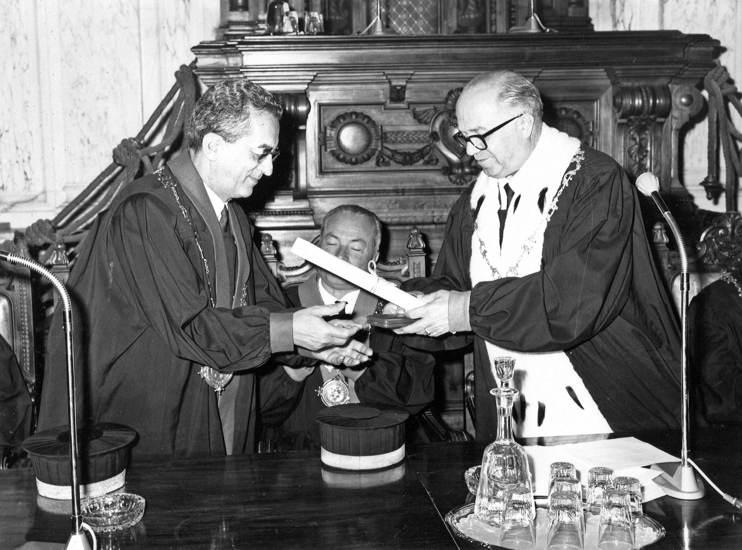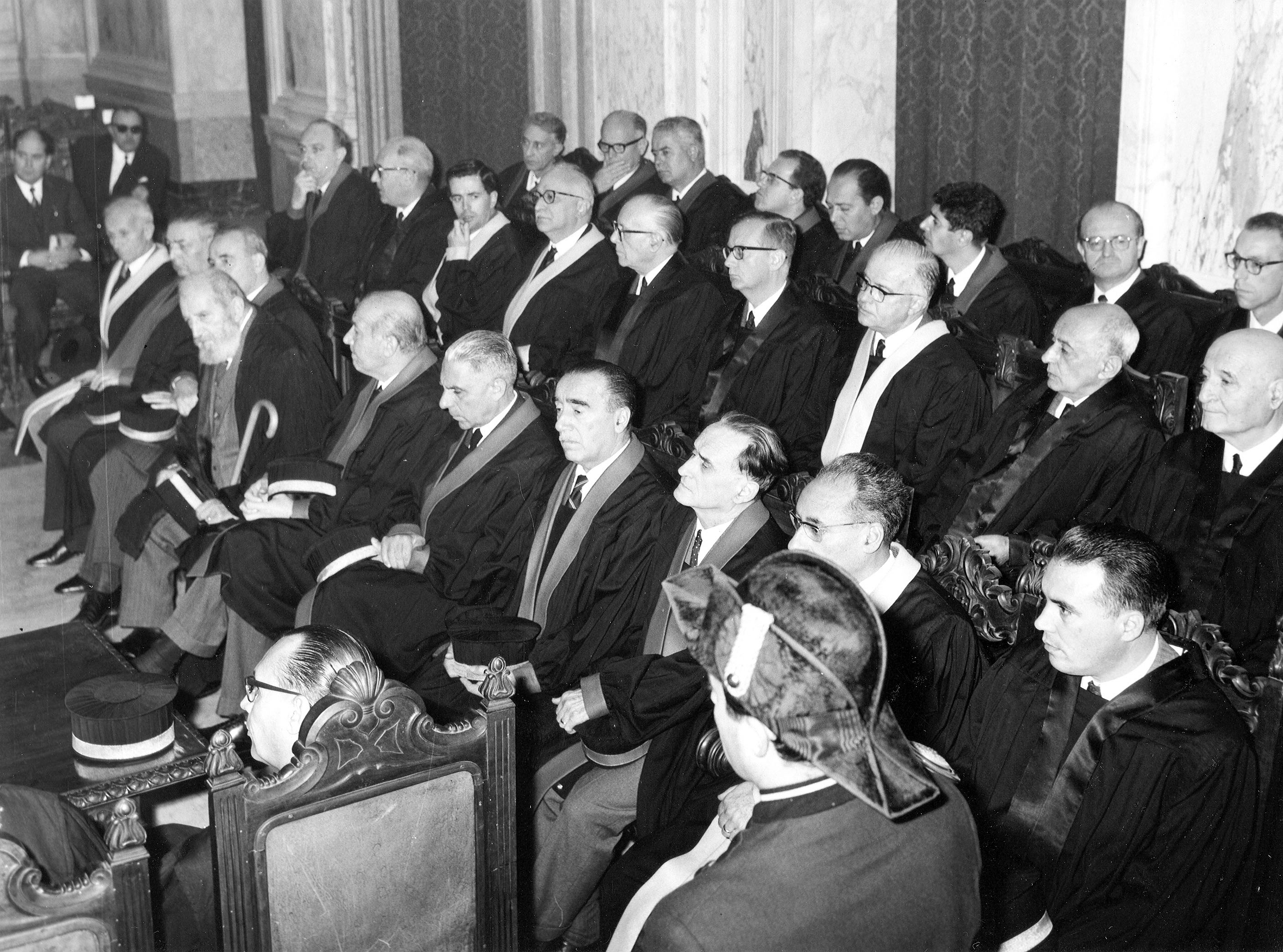 Prima di dare la parola al prof. Elio Fazzalari, ordinario di diritto processuale civile, che terrà la prolusione ufficiale sul tema «Problemi della giustizia in Italia», consegnerò agli illustri maestri professori: Lucio Lazzarino, Folco Domenici, Curzio Massart, Nestore Bernardo Cacciapuoti. Mario de Vergottini, la medaglia d’oro di benemeriti della Scuola della cultura e della arte, loro conferita dal Presidente della Repubblica, quale riconoscimento della Nazione per l’opera da essi svolta a vantaggio della Università italiana.